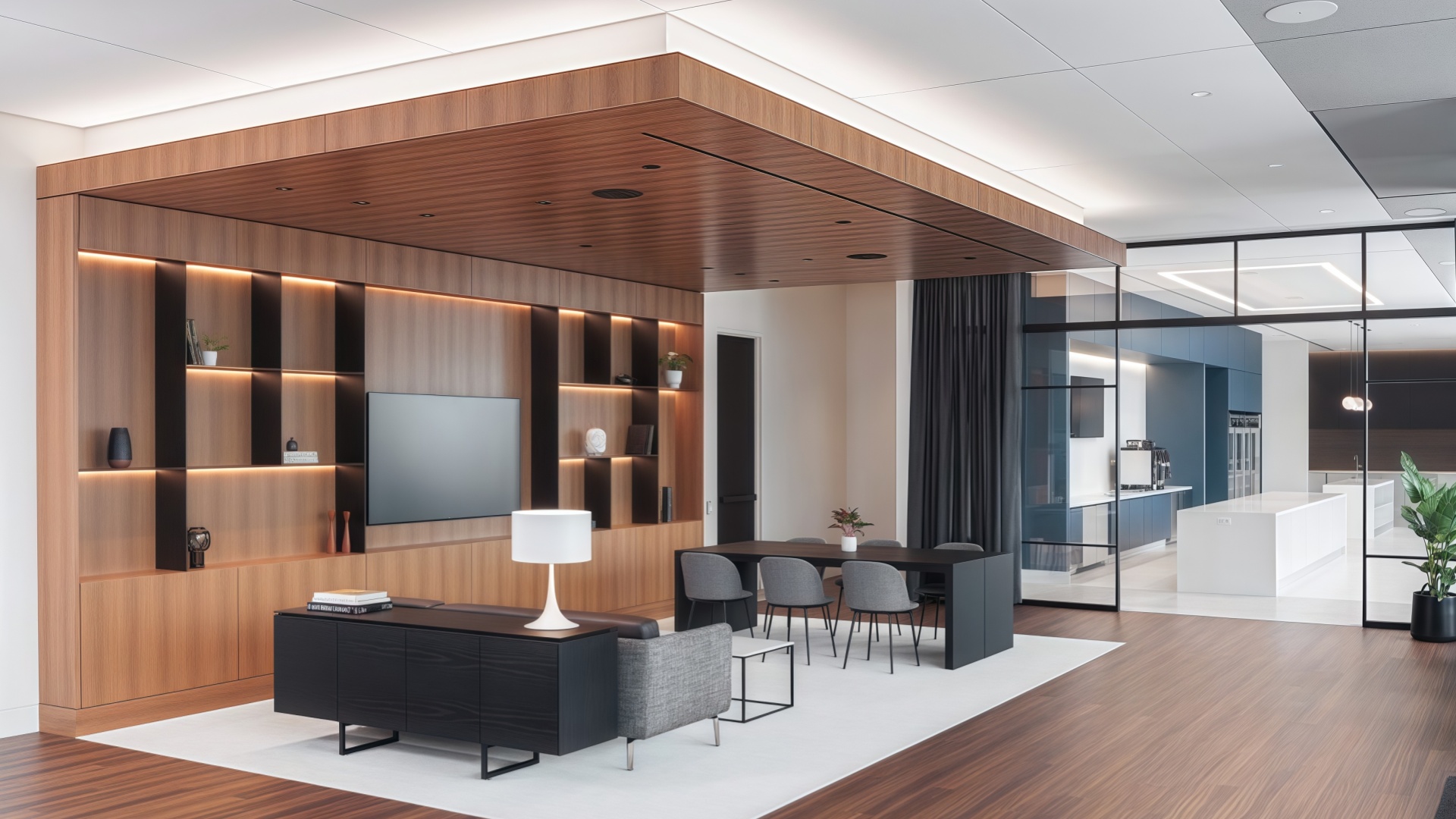 Prioritize hybrid‑ready client suites: flexible conference furniture, divisible rooms, and tech‑integrated credenzas.