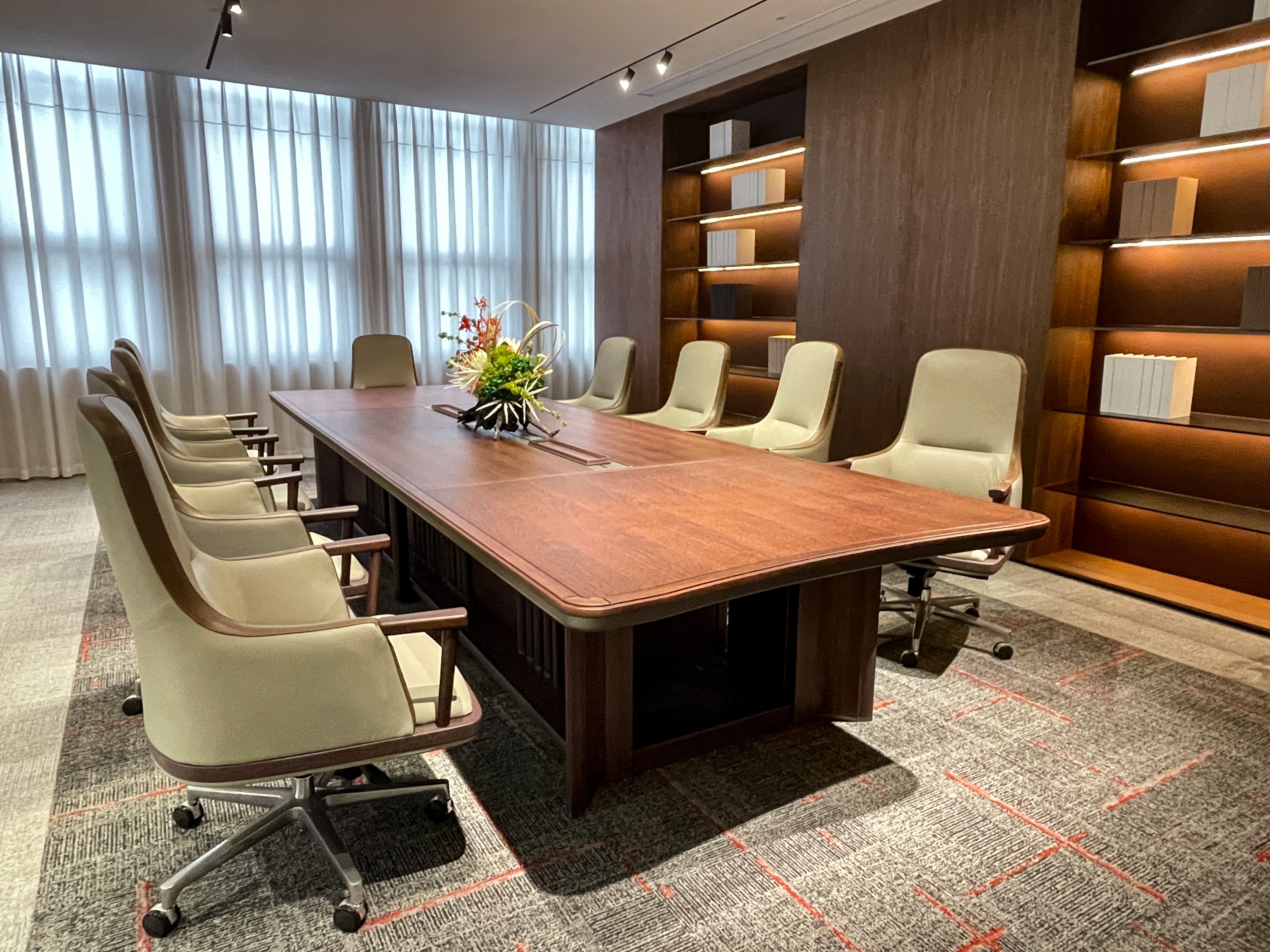 Lighting integration in furniture helps create optimal meeting environments. Task lighting built into tables provides adequate illumination for document review, while ambient lighting in credenzas creates comfortable background illumination. Circadian lighting systems adjust color temperature throughout the day to support natural rhythms.